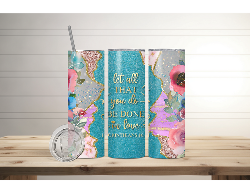 Inspirational 20 oz stainless steel tumbler with sublimated design